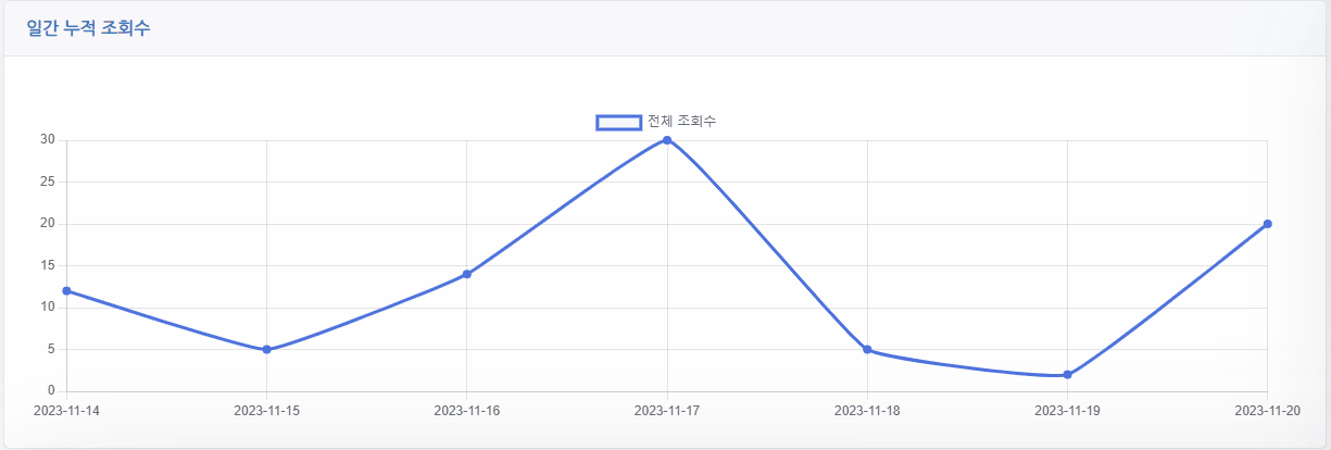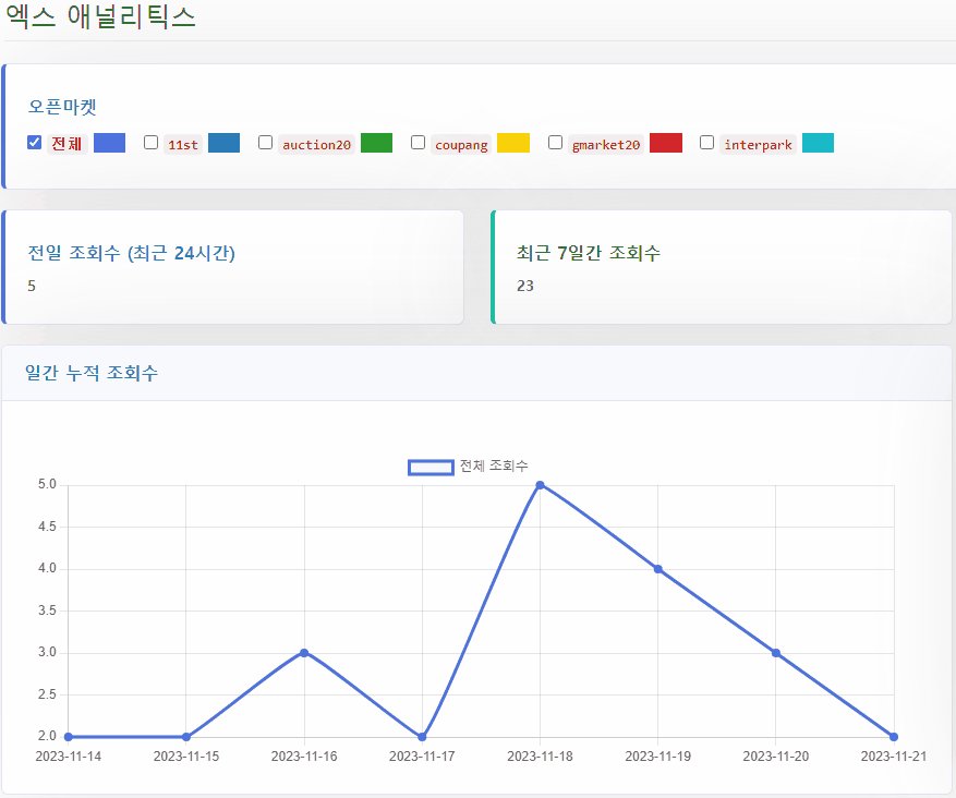 오픈마켓에 전송한 상품들의 날짜별 누적된 조회수를 분석할 수 있습니다.