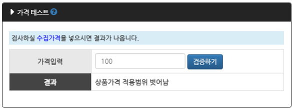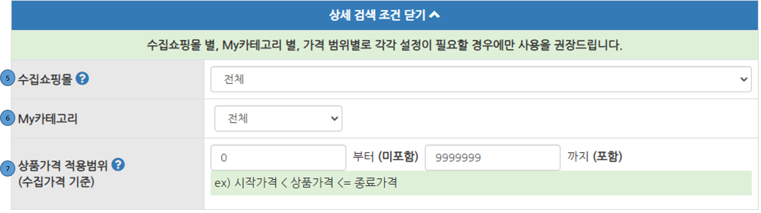 - 만일 수집 상품 전체 가격대에 적용하시는 경우, 공란으로 두시거나, '0' 부터 '0' 까지로 입력하실 수 있습니다.