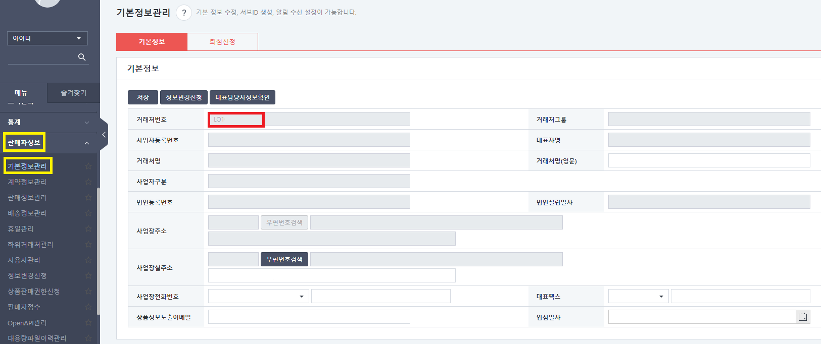 - * 롯데온 판매자 센터 > 판매자 정보 > 기본정보관리 탭으로 이동합니다.