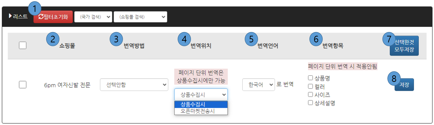 - - [③ 번역방법]이 [페이지 단위 번역]일 경우에는 상품 수집시에만 적용됩니다.