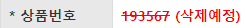 - - 삭제예정인 상품의 경우 붉은 글씨로 상품번호와 삭제예정임을 알려주는 문구가 생성됩니다.