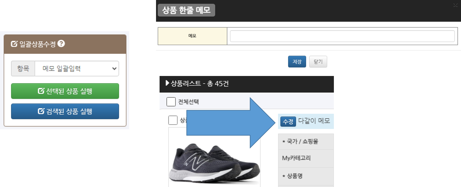 - * 선택(검색)한 상품들에게 동일한 메모를 입력합니다.