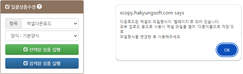 - * 선택하거나 검색한 상품들을 엑셀 파일로 출력할 수 있습니다.