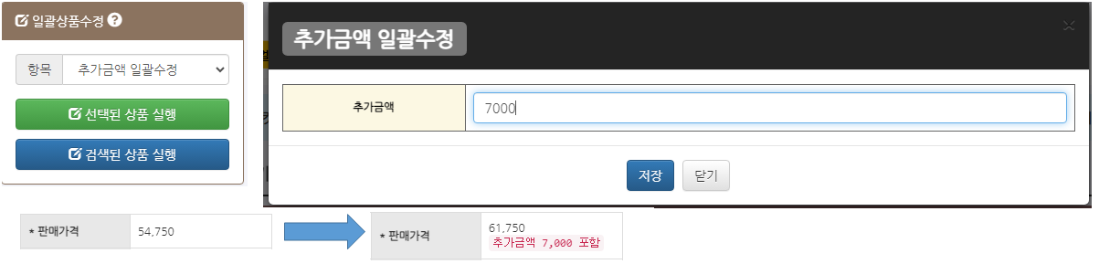 - * 선택하거나 검색한 상품들의 판매가격을 일괄적으로 추가하거나 뺄 수 있습니다.
