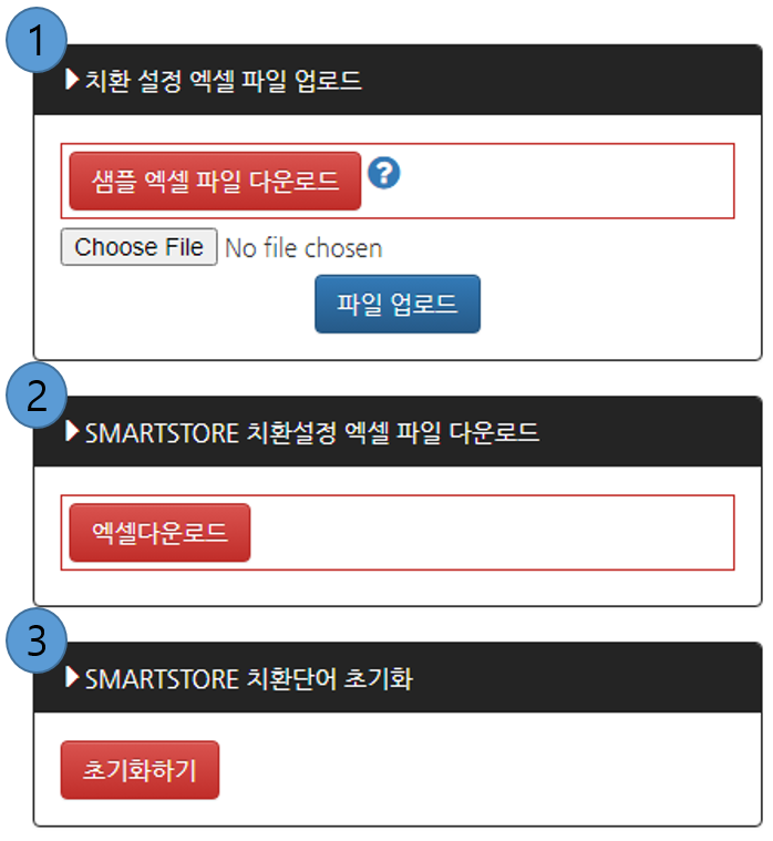 - - 오픈마켓별로 치환단어를 엑셀을 통해서 업로드 할 수 있습니다. 대량으로 등록하실 때 사용하시기 적합합니다.