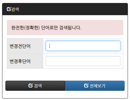 - - 검색은 [변경전단어] 또는 [변경후단어]중 한곳만 입력하셔도 검색 가능합니다.