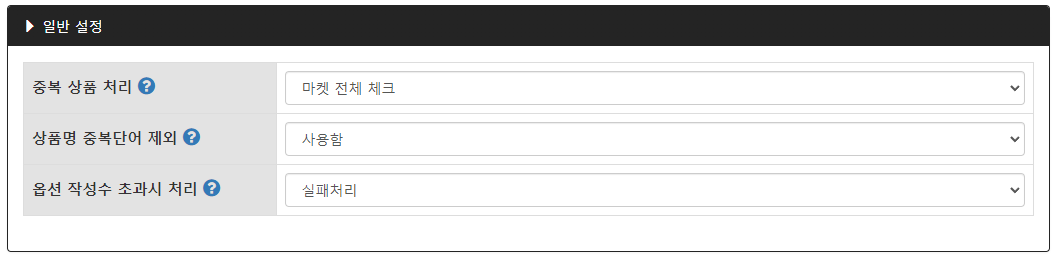 - - 동일한 상품명을 기준으로, 중복되는 상품의 전송여부를 설정하는 기능입니다.