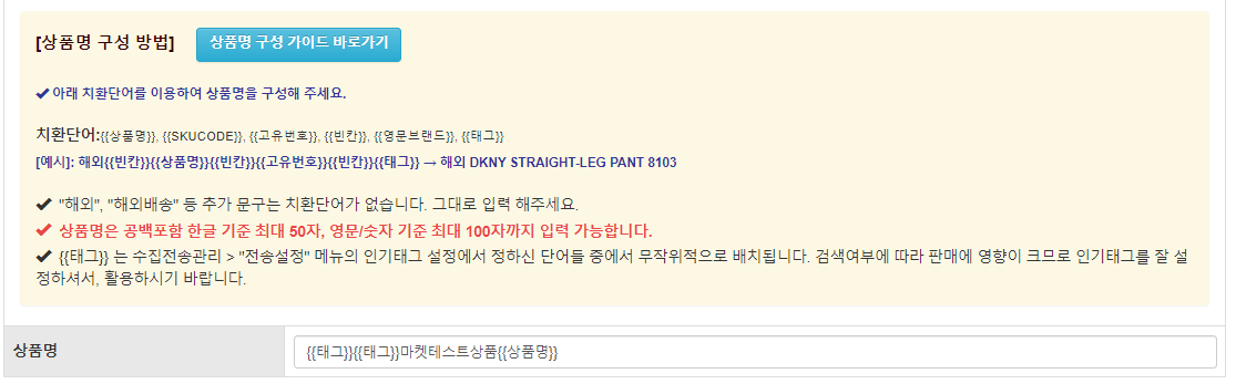 - - 상품 수집 후 마켓상품관리, 상품 상세 화면에서 적용된 상품명을 확인 할수 있습니다.