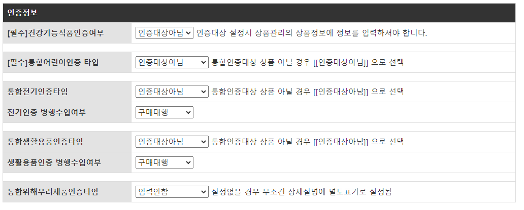 - - 카테고리에서 요구하는 인증에 맞게 설정합니다.