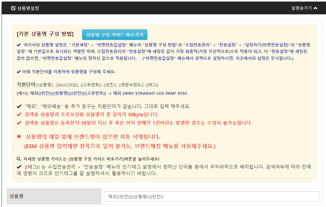 - - 동일한 상품명을 기준으로, 중복되는 상품의 전송여부를 설정하는 기능입니다.