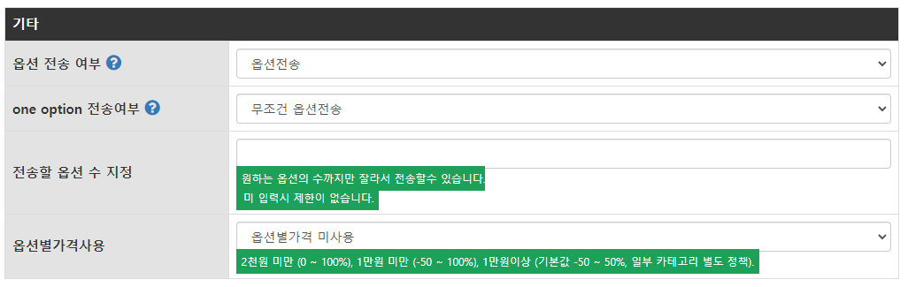 - - [옵션전송여부], [one option 전송여부] 가 [전송안함] 일떄는 해당 설정은 적용되지 않습니다.