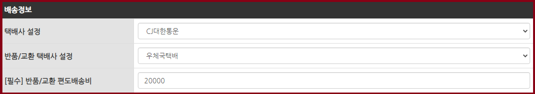 - - 반품 또는 교환시 편도 배송비를 설정합니다.