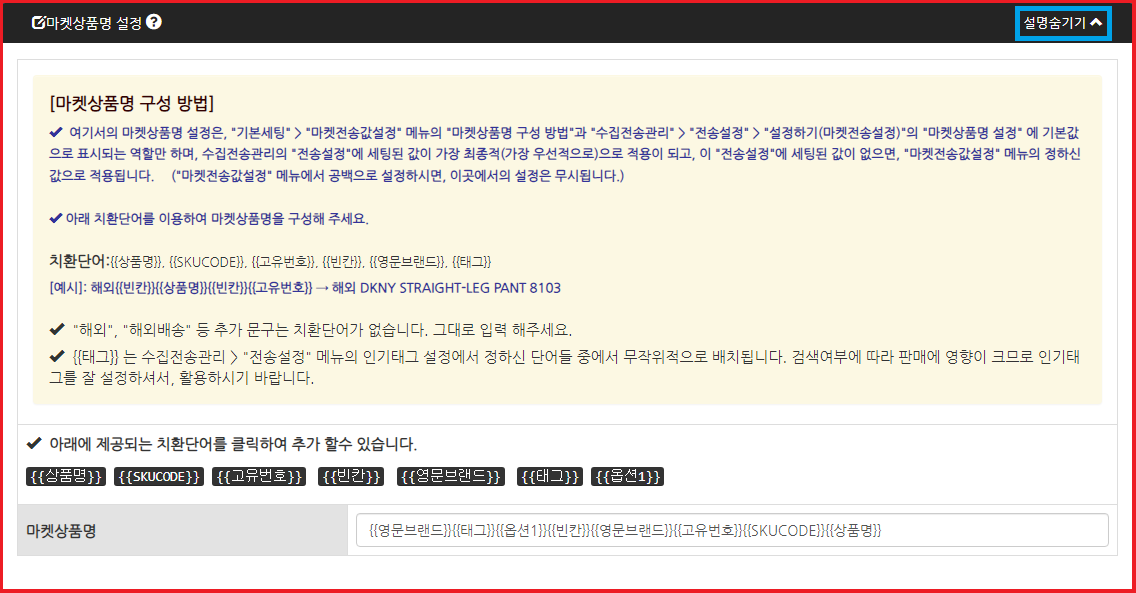 마켓상품명 설정
