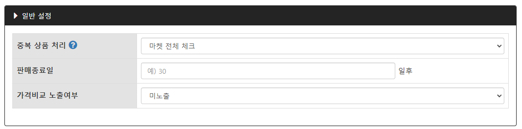 - - 동일한 상품명을 기준으로, 중복되는 상품의 전송여부를 설정하는 기능입니다.