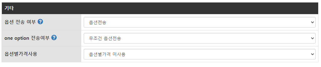 - > one option / one option 인 경우 옵션전송안함 : one option / one option 인 경우 옵션 전송을 하지 않습니다.