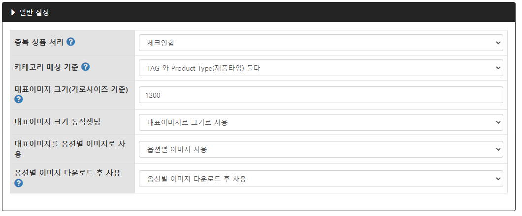 - - 옵션별 이미지 다운로드 하여 일정한 크기로 전송할지 아니면 수집된 이미지 url 로 전송할지 설정합니다.