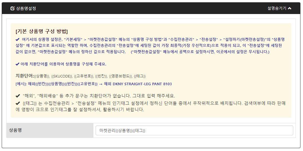 - - 동일한 상품명을 기준으로, 중복되는 상품의 전송여부를 설정하는 기능입니다.