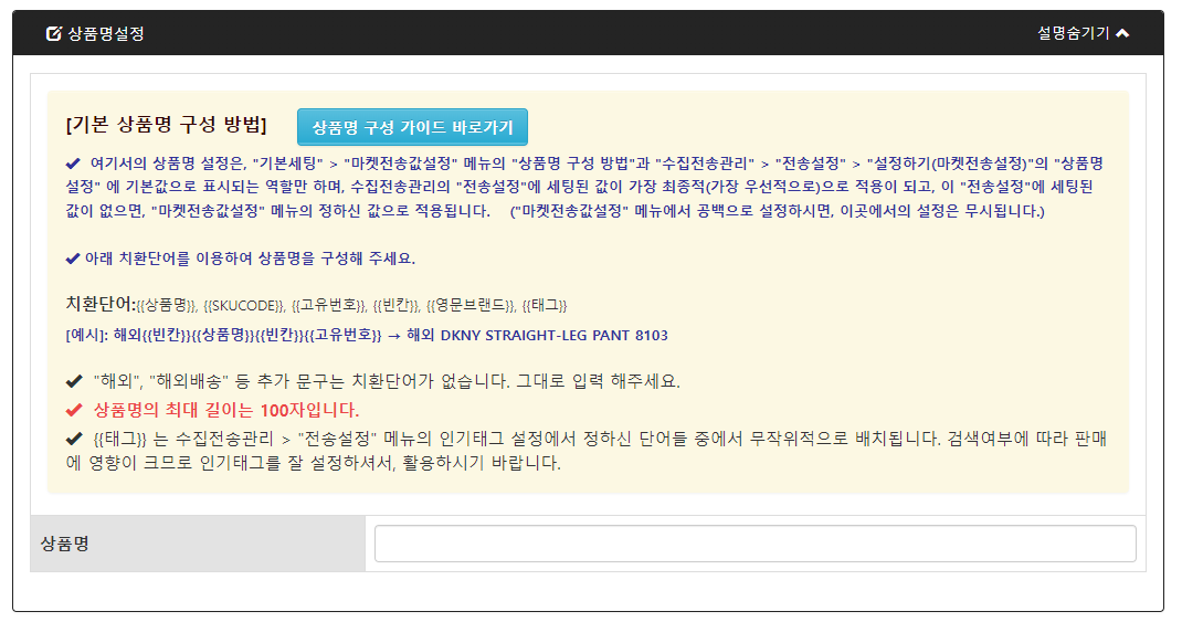 - * 중복 상품 처리 : 동일한 상품명을 기준으로, 중복되는 상품의 전송여부를 설정하는 기능입니다