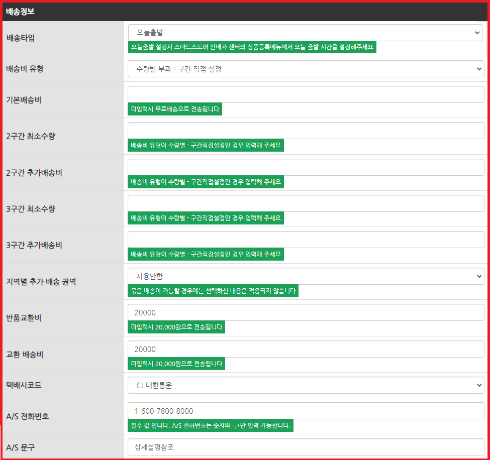 - - 미입력시 배송비유형은 무료배송으로 설정됩니다.