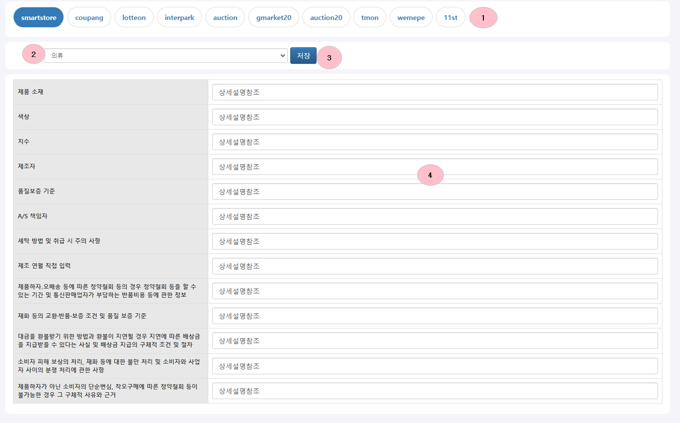 - * 1. 같은 품목도 오픈마켓 별로 입력할 항목이 다를 수 있습니다. 설정할 오픈마켓을 먼저 선택해주세요.